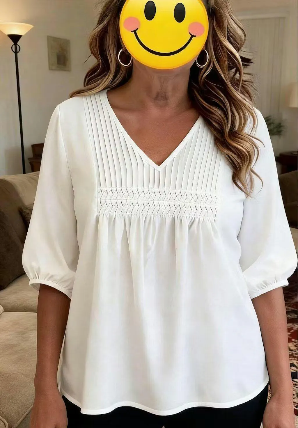 Elevate your everyday wardrobe with this timeless white V-neck top. Crafted from quality fabric, it offers a flattering silhouette that transitions seamlessly from casual to professional settings. The classic V-neckline provides a refined touch, while the plain design ensures versatile styling with virtually any piece in your closet. Perfect for layering or wearing solo, this essential staple delivers understated elegance and reliable comfort for year-round wear.